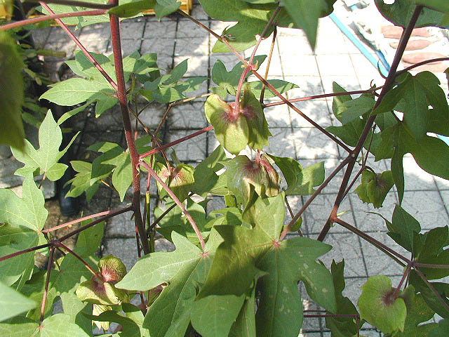 5/20過ぎに植えた和綿の種、2ヶ月過ぎに黄色の綺麗な花が咲き、9/1ついに綿の実がはじけて、始めて綿を収穫した! まだいくつも実が付いているのでこれから何回か収穫できると思う。